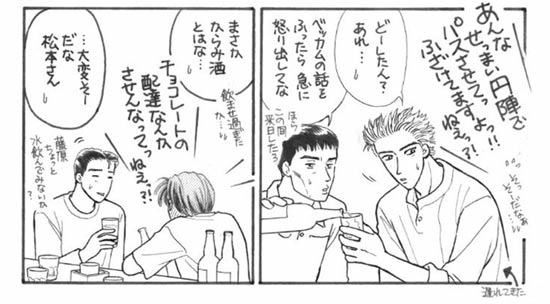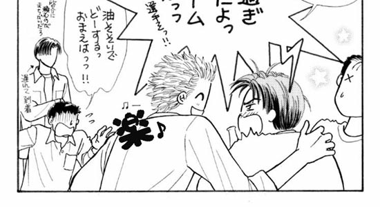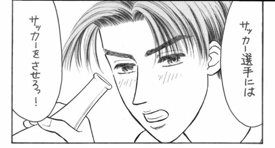(2003.6.29配布ペーパー) 日韓W杯サッカー大会後もサッカーに熱狂していた日本。 そんな中来日したイングランドの人気選手ベッカムですが、 彼が日本で何をさせられていたかをテレビで観て頭を抱えてしまい、できたネタ。 もっと…もっと日本のサッカーの将来にプラスになるような事をしてもらえよ!!(涙)と思った。 まあ、招んだ企業側にしたら、自社の利益が何よりなんでしょうけども。 …というオトナの事情を、サッカー少年だった若い拓海はあまり考えないで 純粋にムカついてくれたらいいなあ。しかし酔わないと外には出さない。 啓介は、そんな地が出た拓海を楽しんでくれたらいい。そんな萌え。 |
