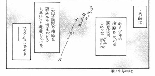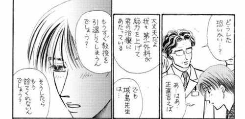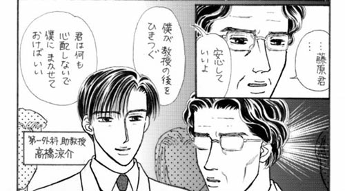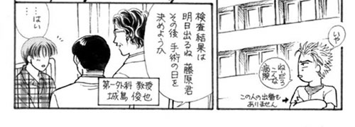 (2004.3.7配布ペーパー) 当時リメイク放送されてた「白い巨塔」のダブルパロ。 原作で『城島のおじさまが医者』、の設定が出た時、 絶対涼介さんと何か関係あると思ったのにな〜。 ………その設定はプロD終わってから?エンディングに使われたり? この漫画に啓介は出てませんが この病院に啓介も入院してるんだよ、バイクで事故って足骨折とかさ、 で、長く入院してる拓海と知り合うんだよ、とか頭の中で思ってました。(笑) ちなみに、ラストの中島みゆきさんの曲は、 N○Kドキュメンタリー『プロジェ○トX』のテーマ曲です。